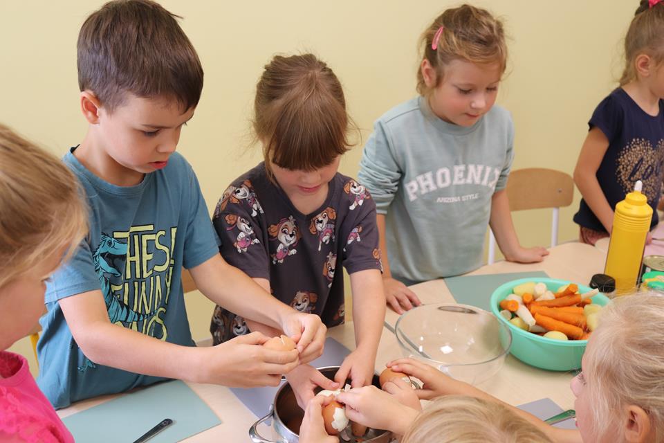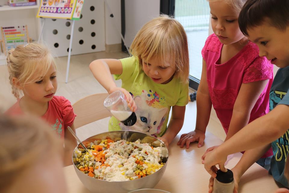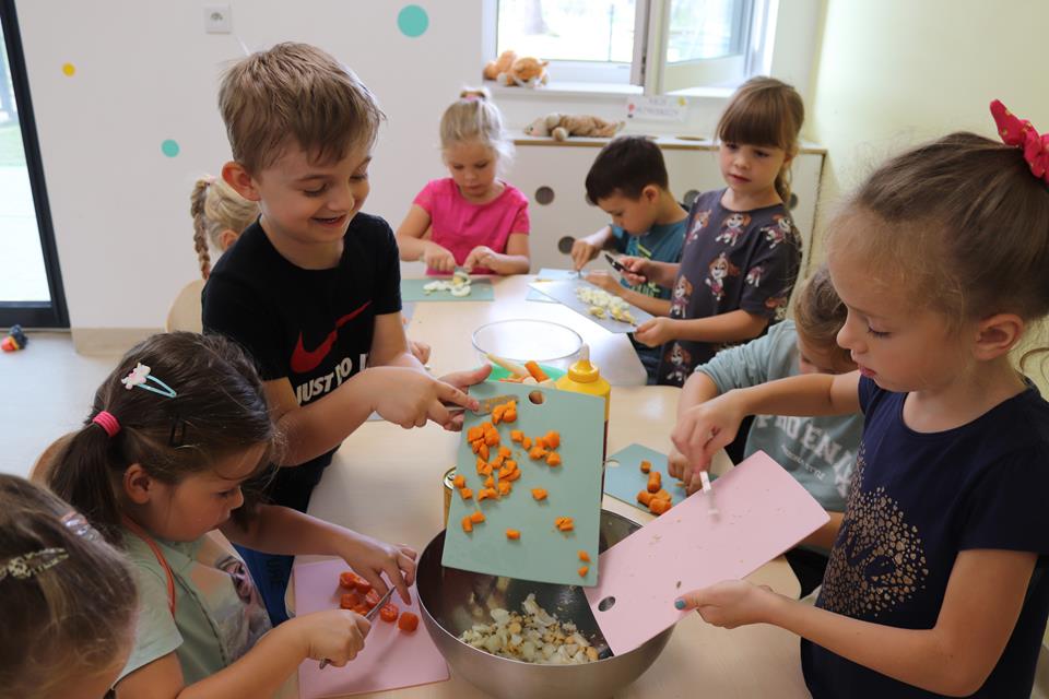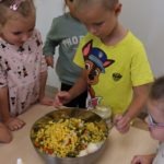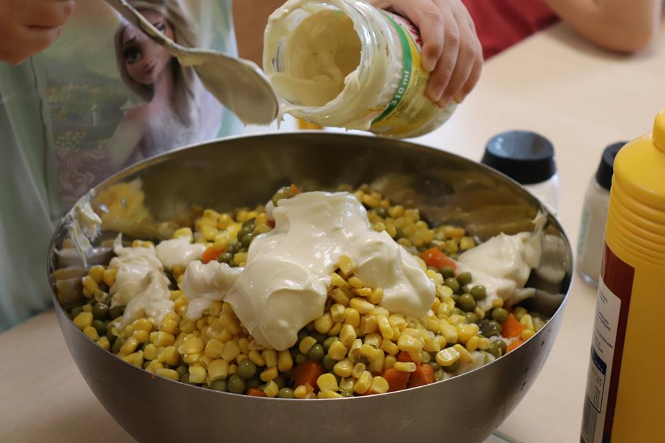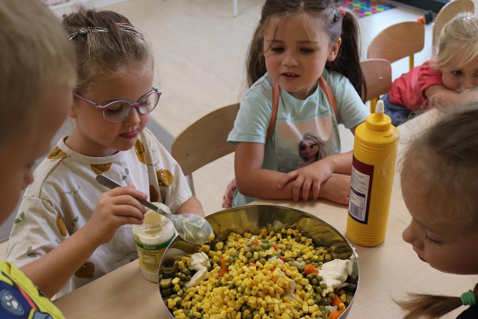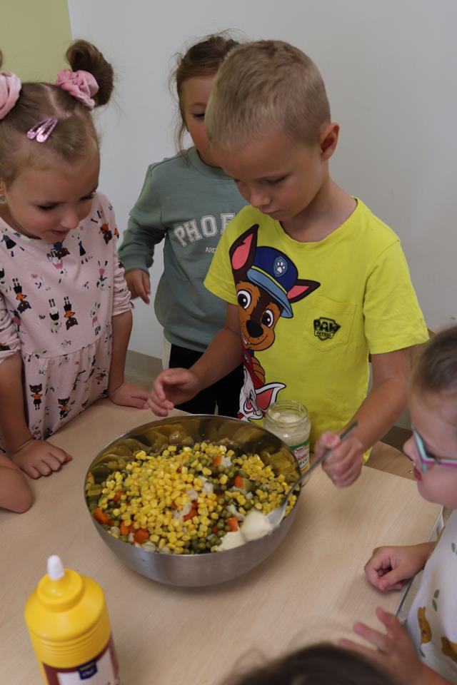 grupa starszaków postanowiła przywołać jej smaki tworząc wspólnie pyszną sałatkę jarzynową