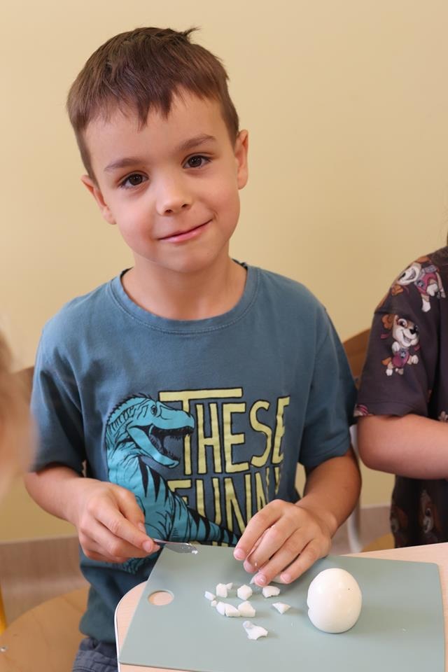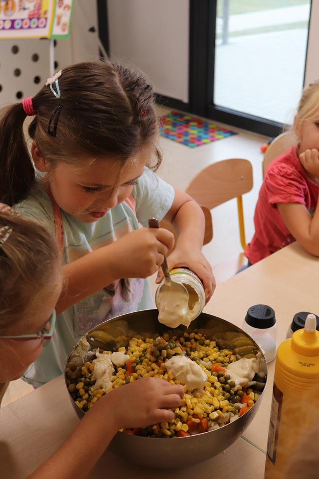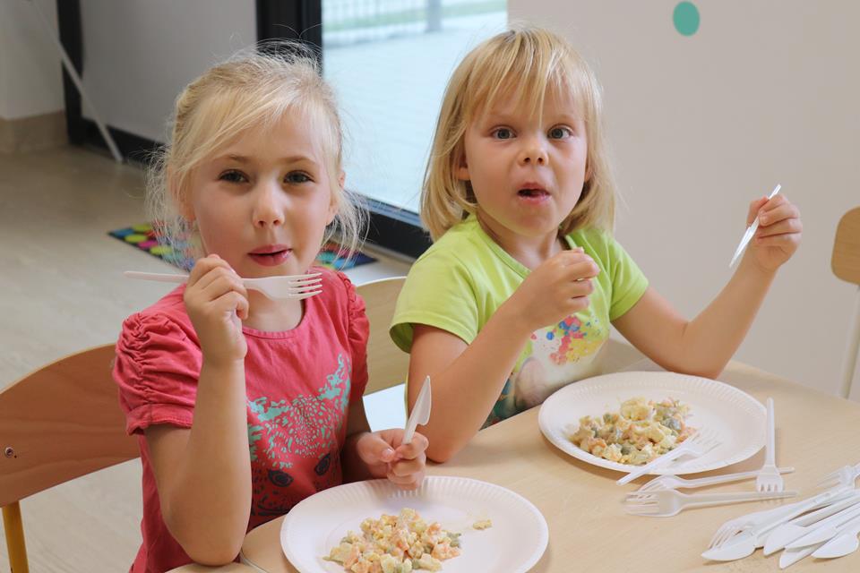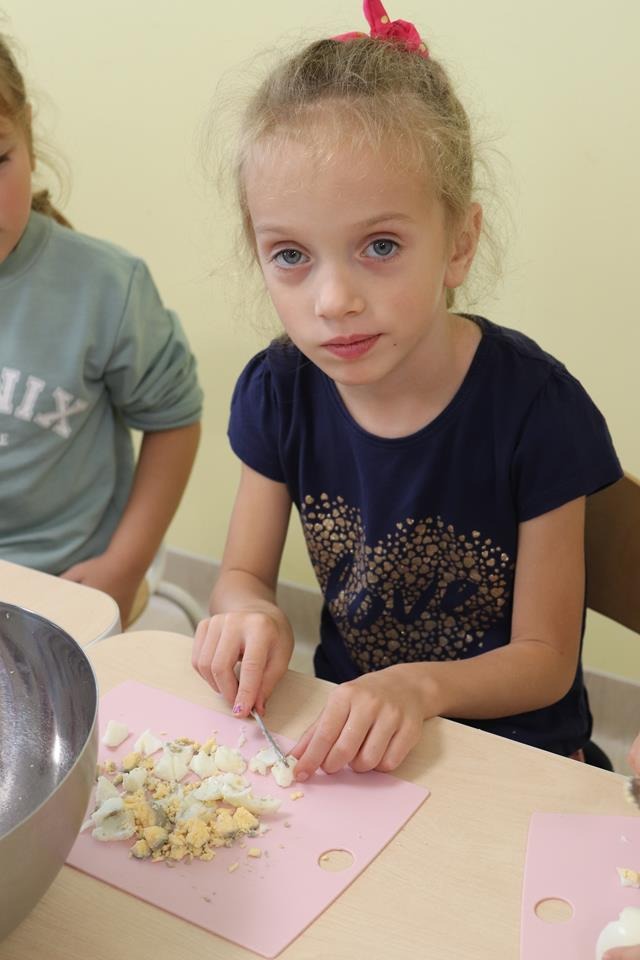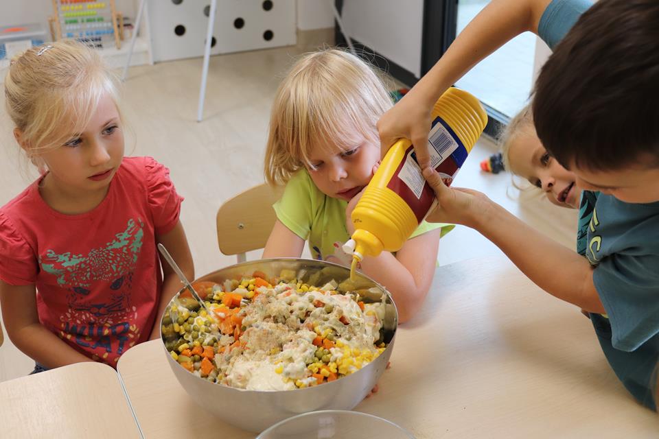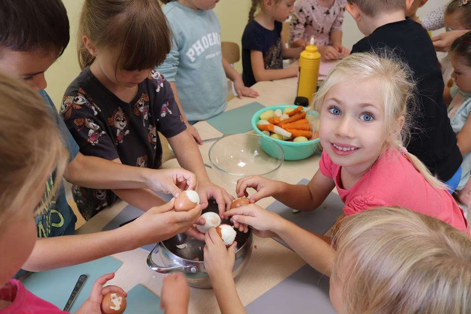 grupa starszaków postanowiła przywołać jej smaki tworząc wspólnie pyszną sałatkę jarzynową