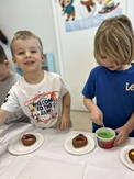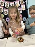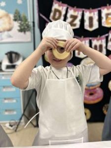 Dzieci zamieniły się w prawdziwych małych cukierników – najpierw przygotowały pyszne donuty, potem z wielką radością je dekorowały, a na końcu oczywiście… z apetytem zajadały!