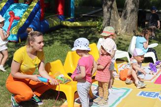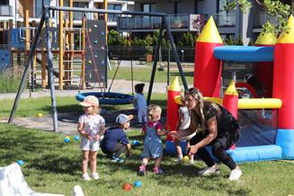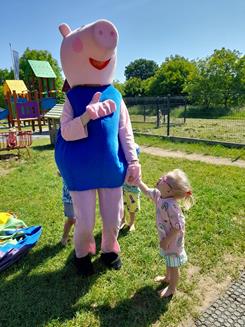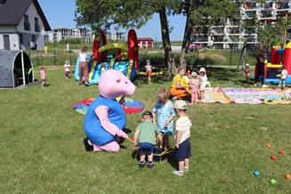 W Naszym Przedszkolu dziś również nie zabrakło atrakcji. Były tańce, zabawy z chustą, pyszny poczęstunek, dmuchane zamki, Świnka Peppa i wiele innych niespodzianek.