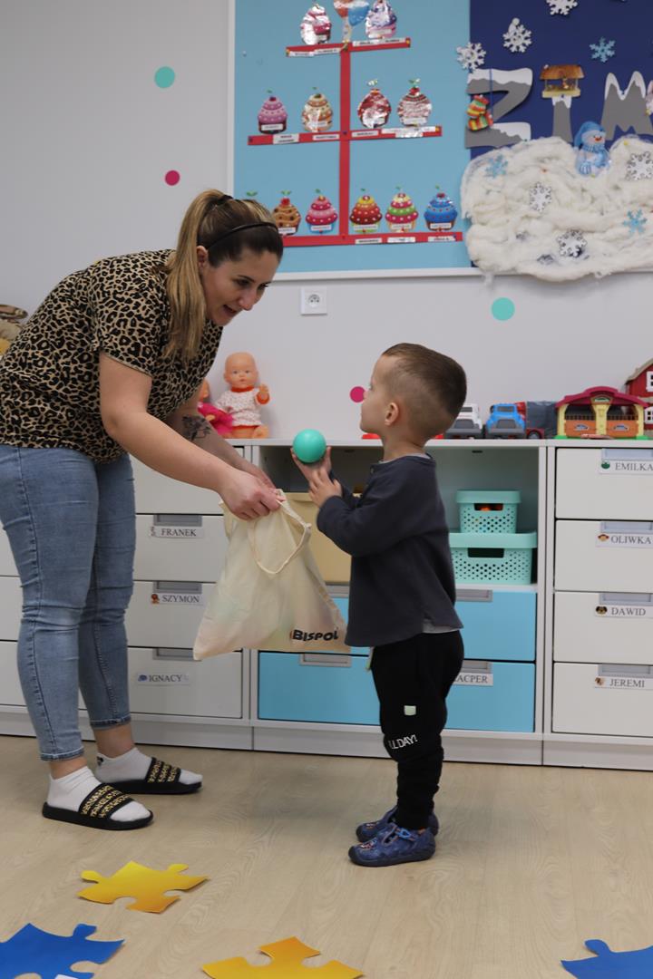z bajkowymi postaciami. Losując kolorowe piłeczki