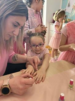 w kolorach pastelowego różu, a dziewczynki mogły cieszyć się chwilą relaksu, malując paznokcie