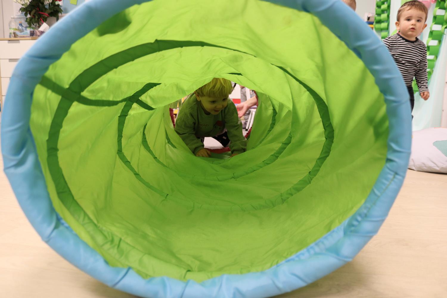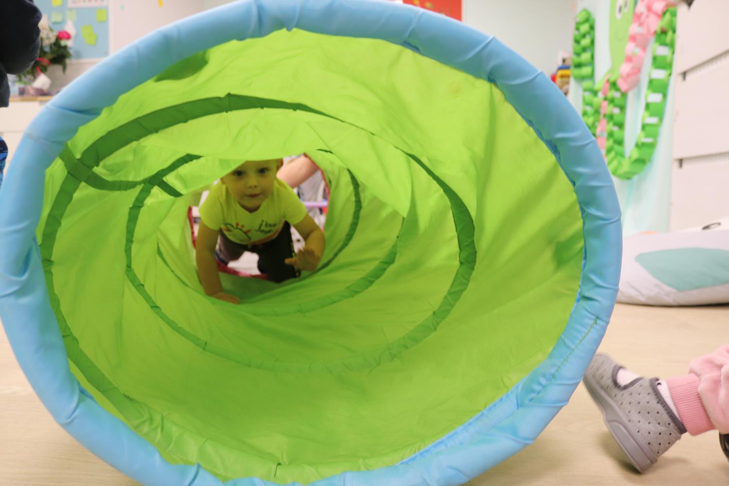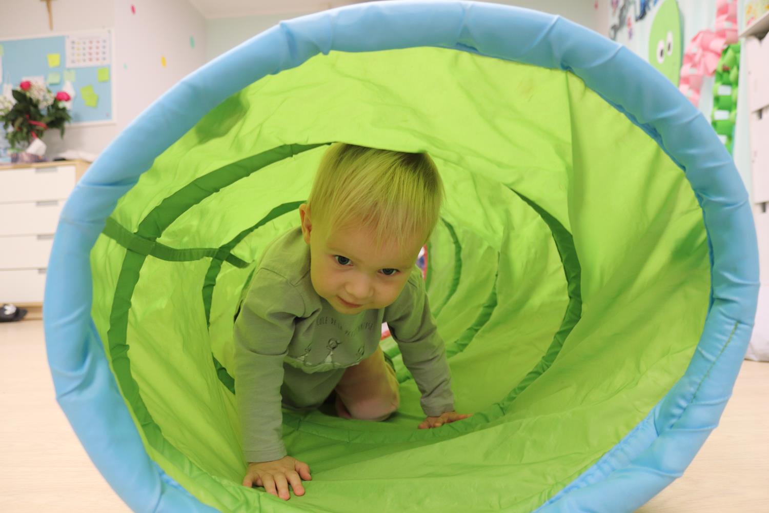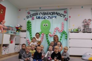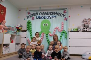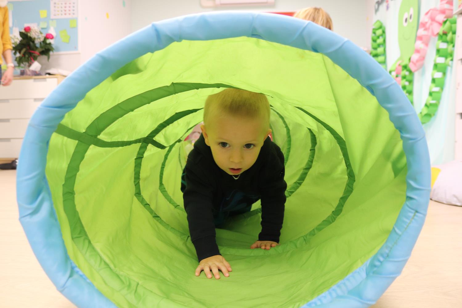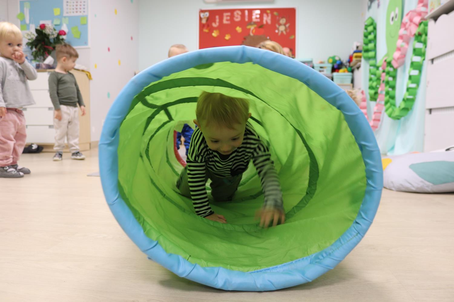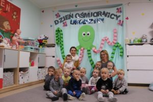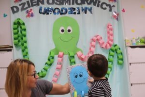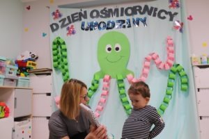 Urodzinowy DZIEŃ OŚMIORNICY 🐙minął nam aktywnie i wesoło😅 Maluszki próbowały ominąć przeszkodę podnosząc nóżko-macki jak ośmiornica wysoko, by później móc zanurkować w tunelu jak w głębi morza.🐙