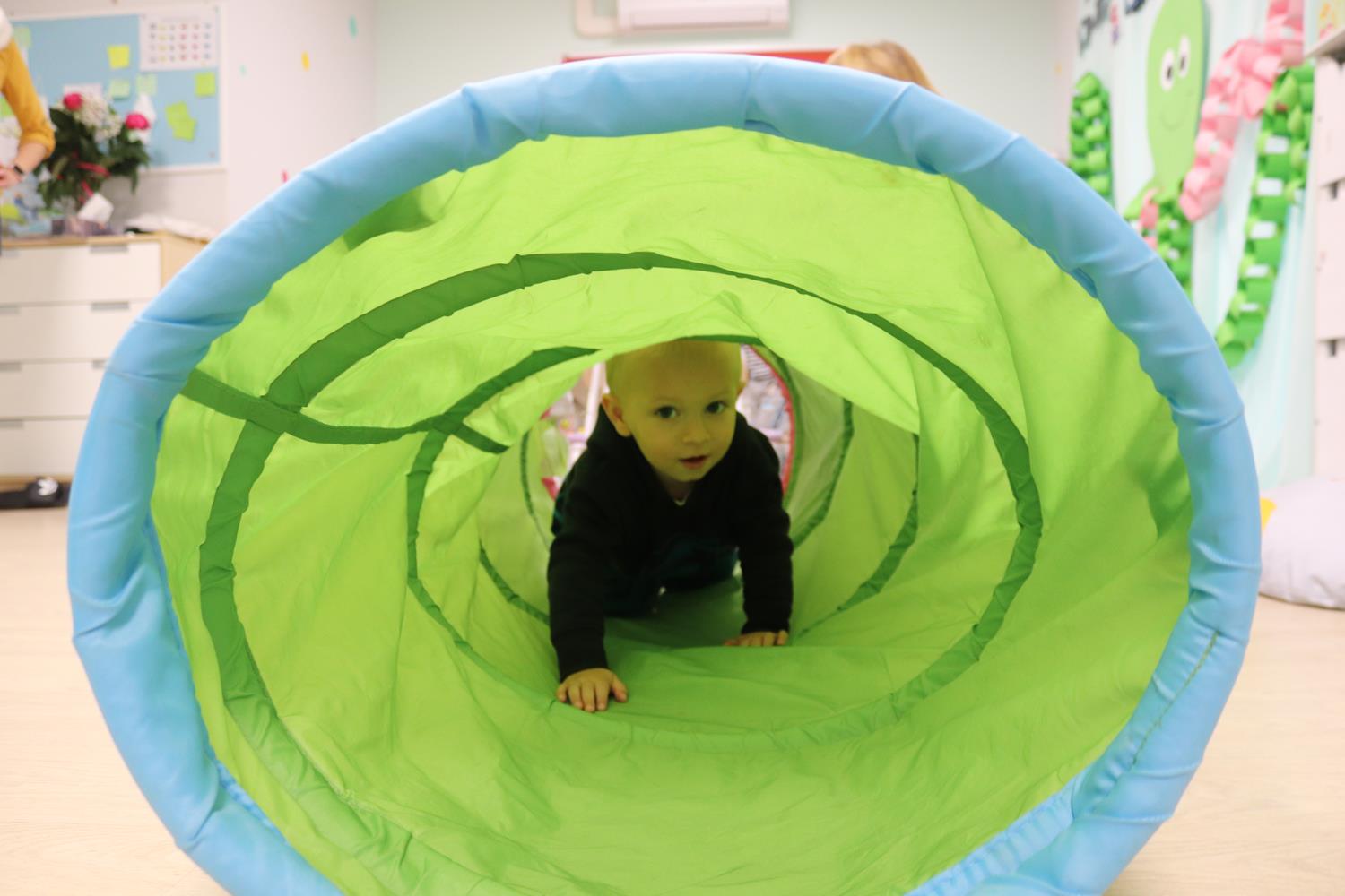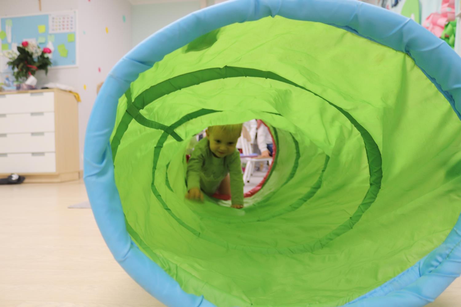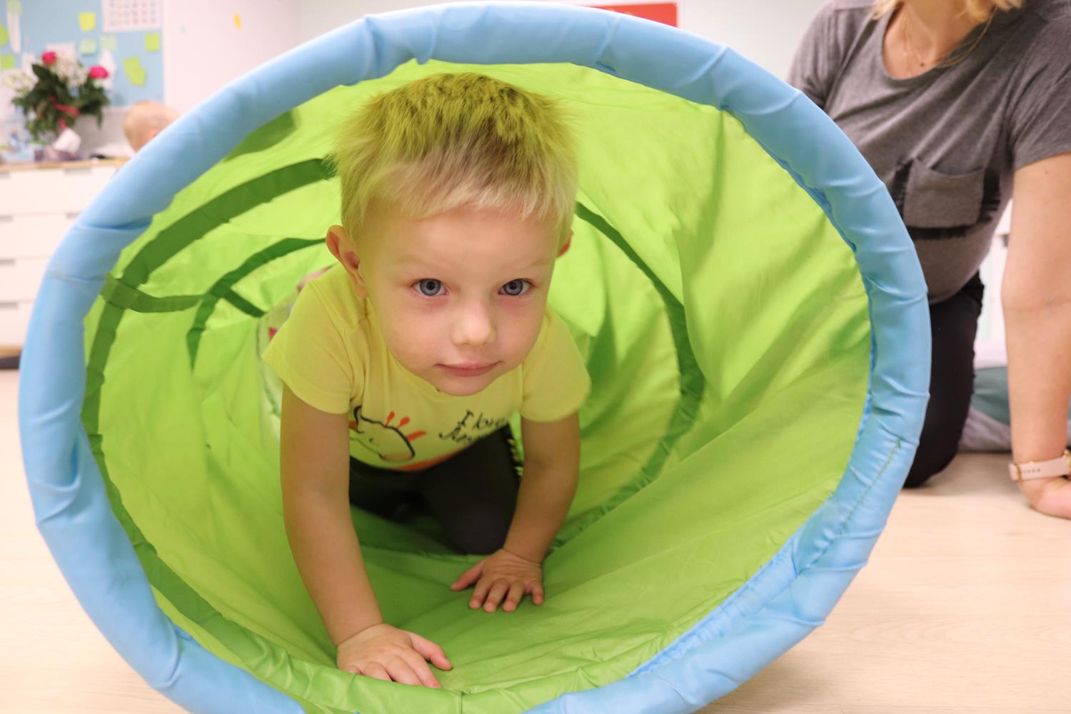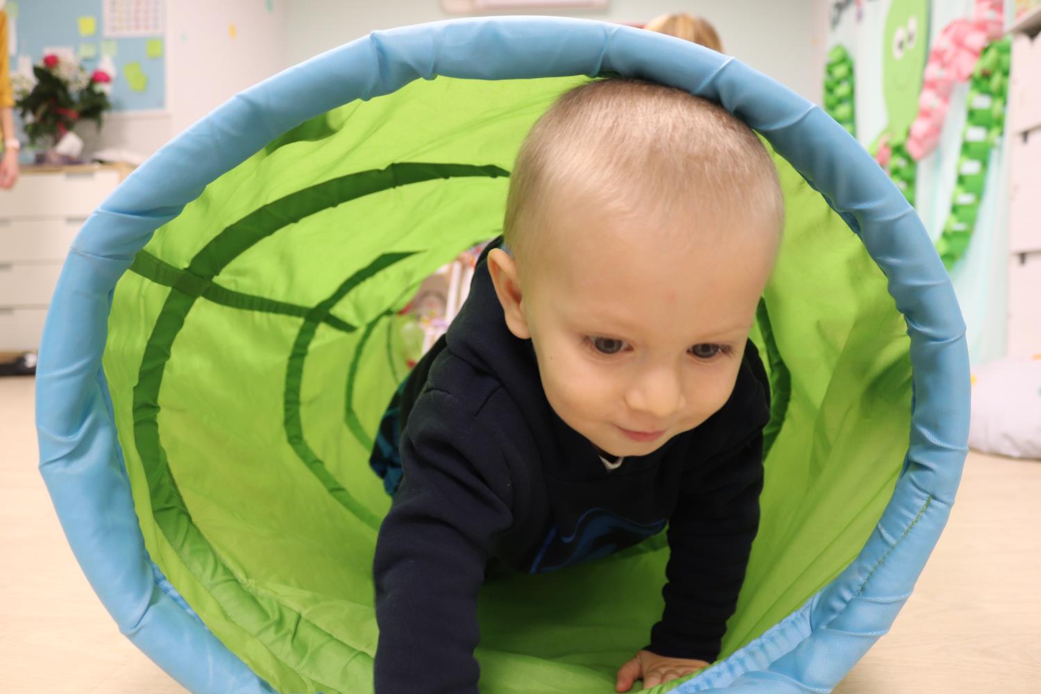 Urodzinowy DZIEŃ OŚMIORNICY 🐙minął nam aktywnie i wesoło😅 Maluszki próbowały ominąć przeszkodę podnosząc nóżko-macki jak ośmiornica wysoko, by później móc zanurkować w tunelu jak w głębi morza.🐙