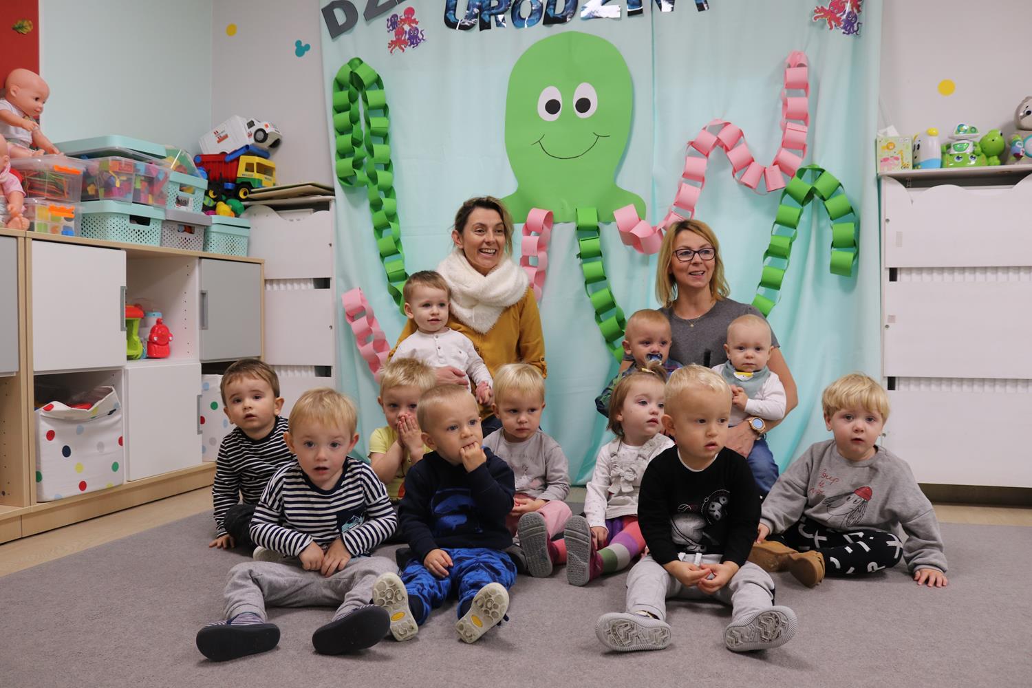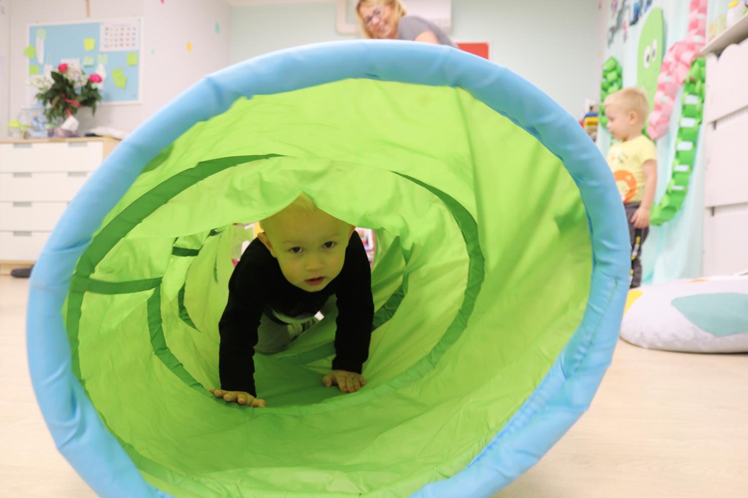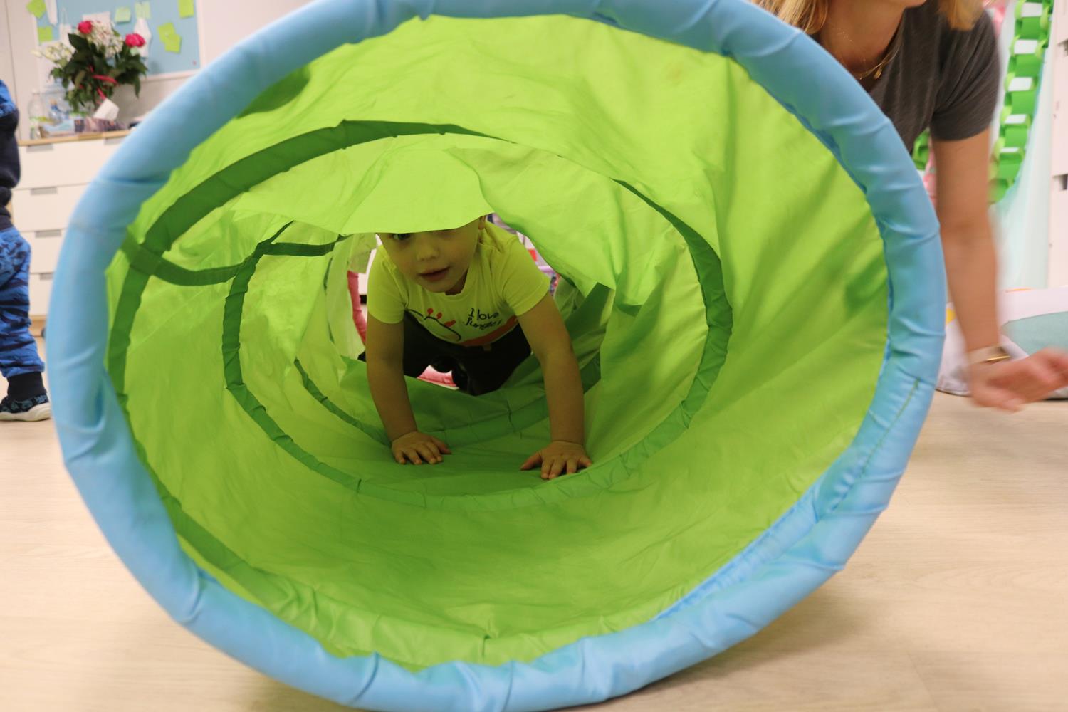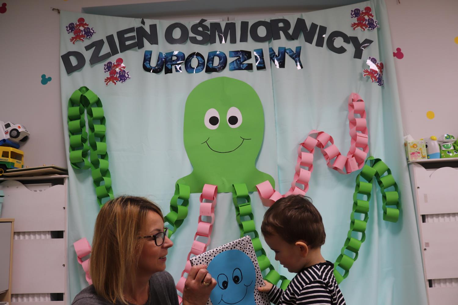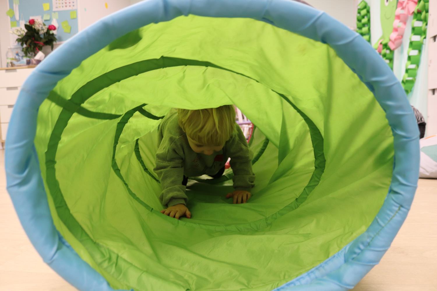 Urodzinowy DZIEŃ OŚMIORNICY 🐙minął nam aktywnie i wesoło😅 Maluszki próbowały ominąć przeszkodę podnosząc nóżko-macki jak ośmiornica wysoko, by później móc zanurkować w tunelu jak w głębi morza.🐙