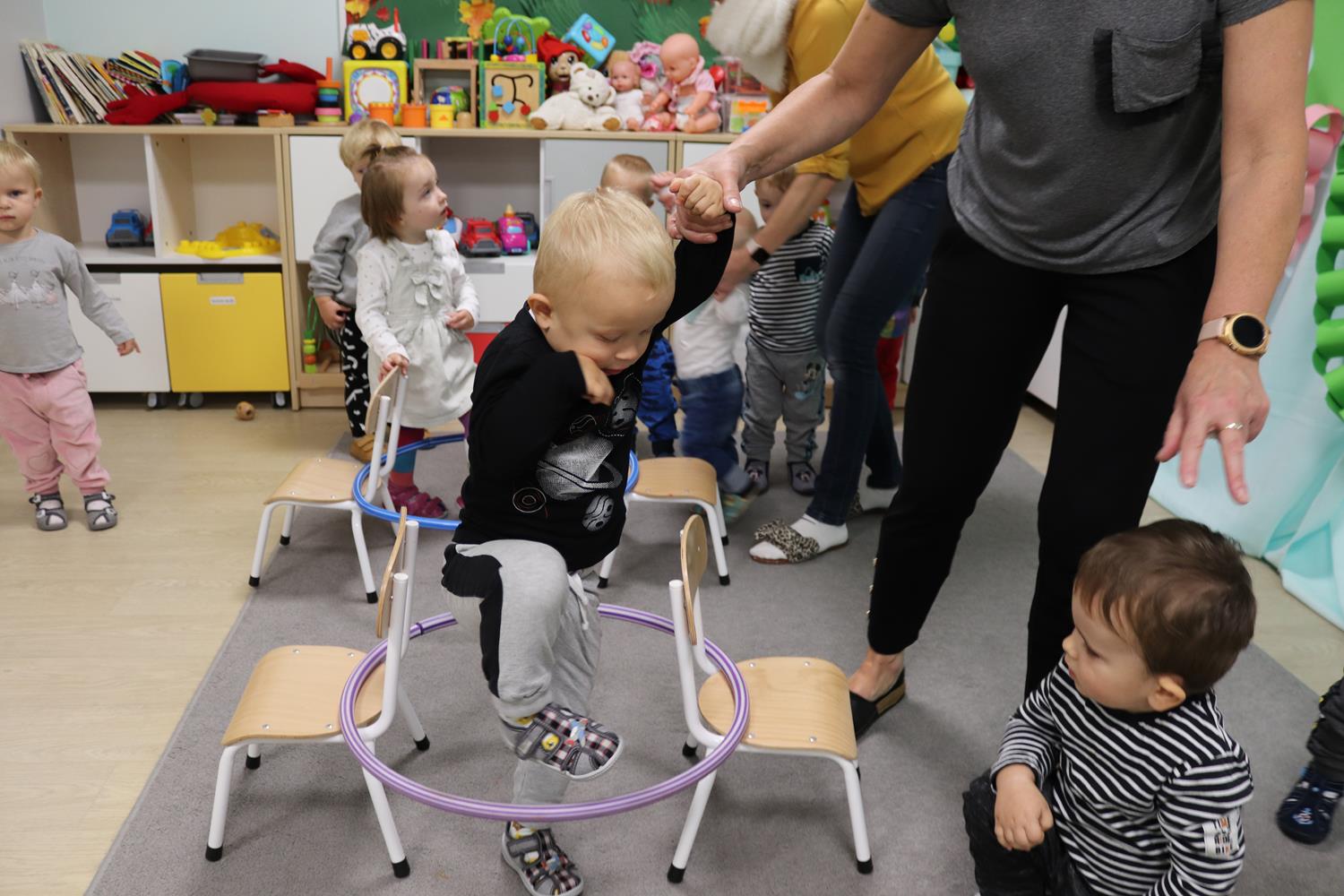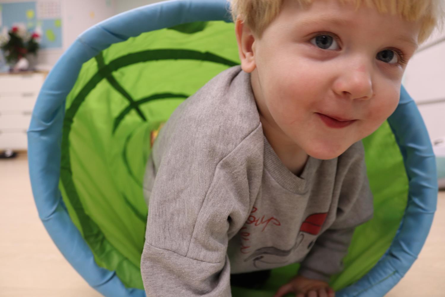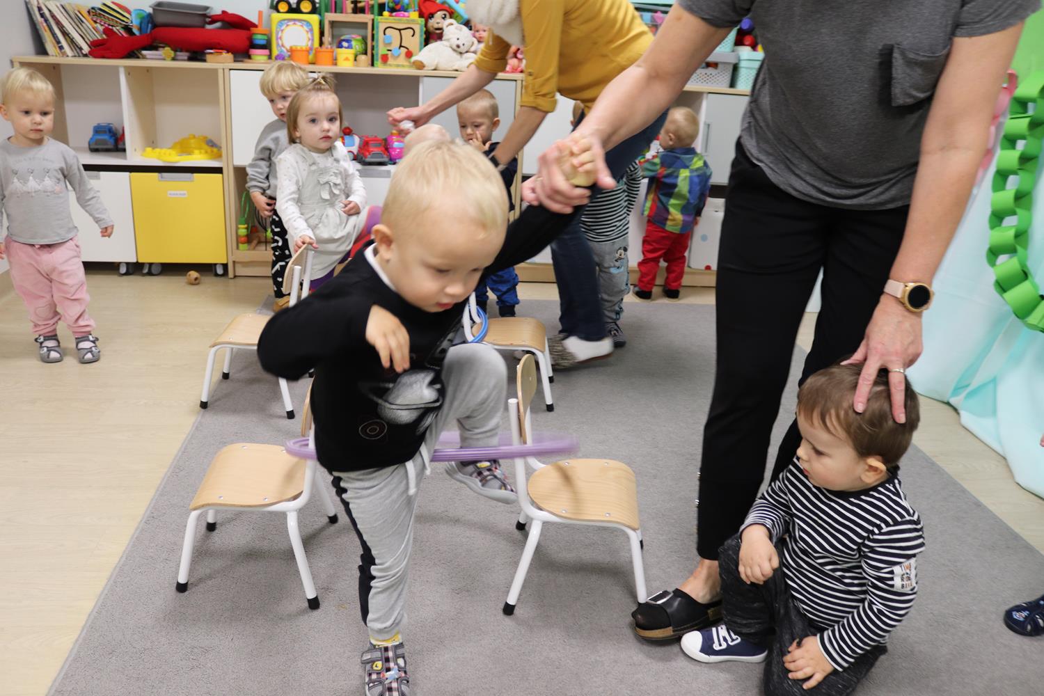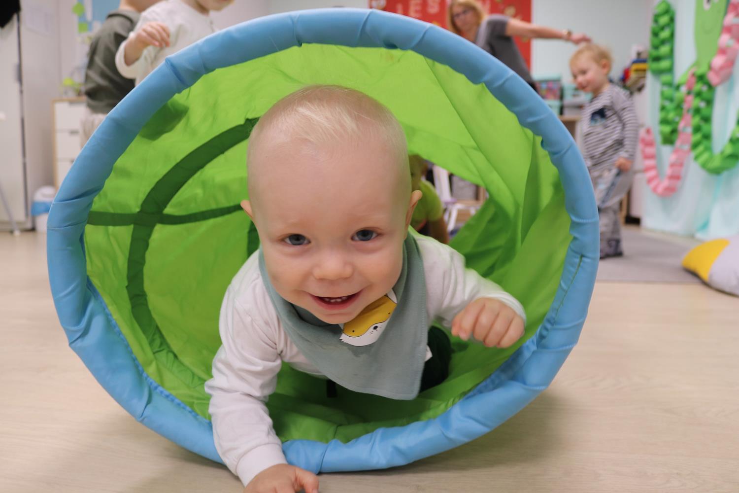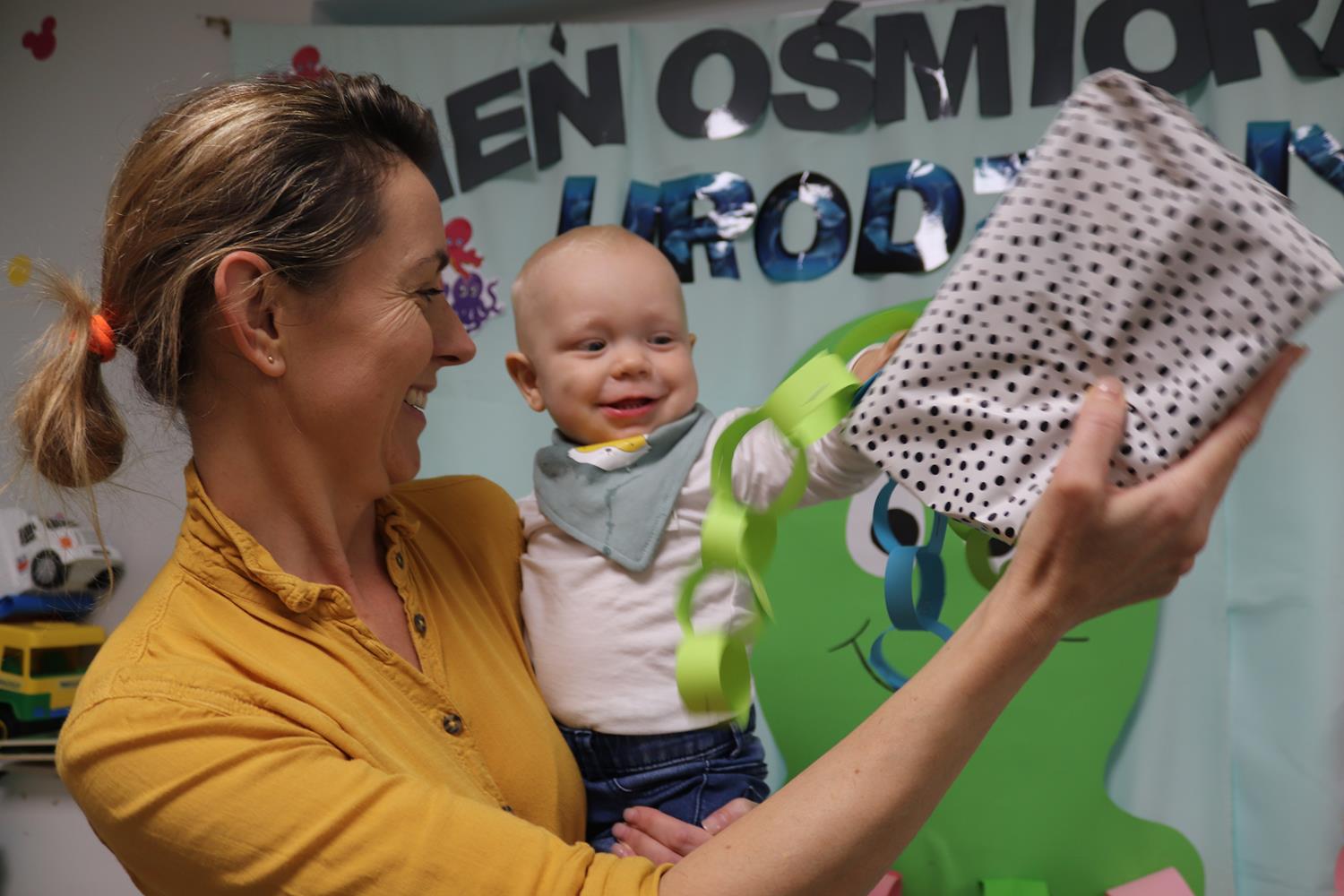 Urodzinowy DZIEŃ OŚMIORNICY 🐙minął nam aktywnie i wesoło😅 Maluszki próbowały ominąć przeszkodę podnosząc nóżko-macki jak ośmiornica wysoko, by później móc zanurkować w tunelu jak w głębi morza.🐙