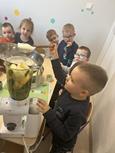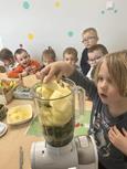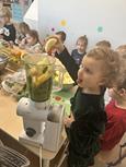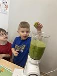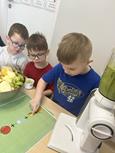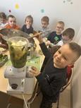 Biedronki samodzielnie wykonały koktajle z przepisów, w których oczywiście głównym składnikiem był szpinak.