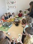 Dzieci z dużym zaangażowaniem uczestniczyły w warsztatach kulinarnych.
