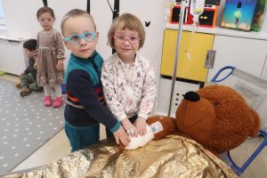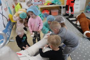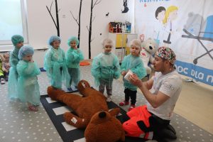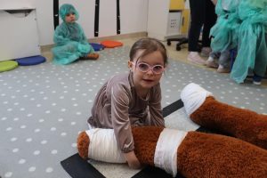 Nasze przedszkolaki podczas zajęć z Doktorem Misiem podczas dowiedziały się jak udzielić pierwszej pomocy