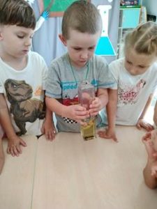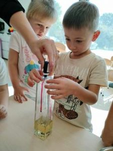 Podczas zabaw badawczych naszym głównym odczynnikiem były produkty spożywcze, dające spektakularne efekty zmiany barw, konsystencji czy też wybuchy.