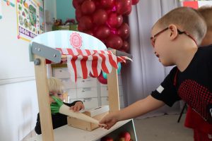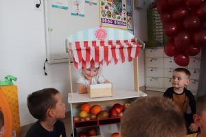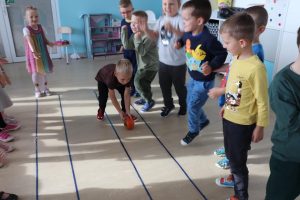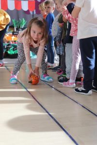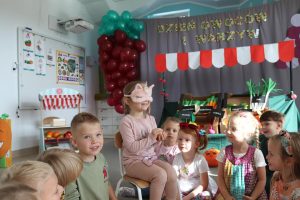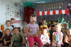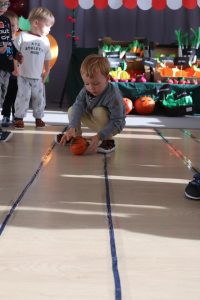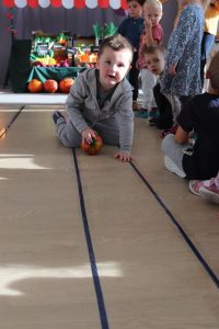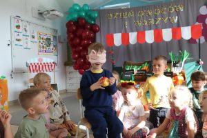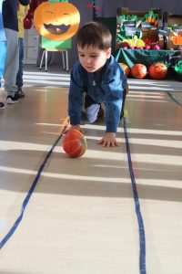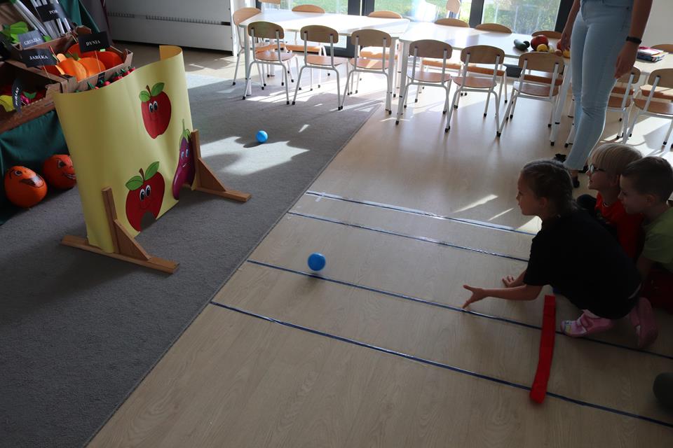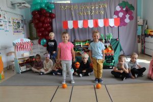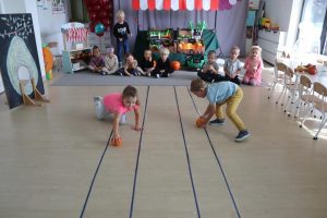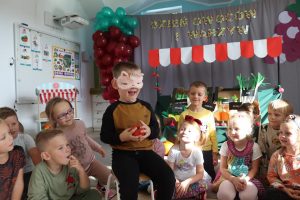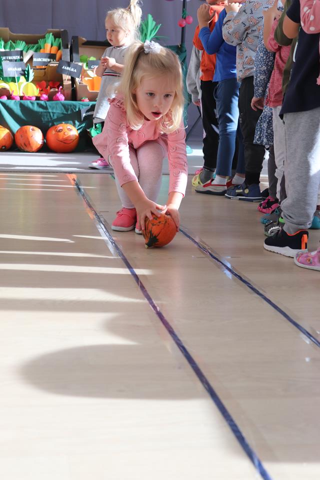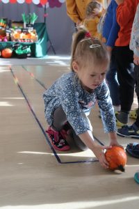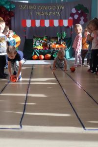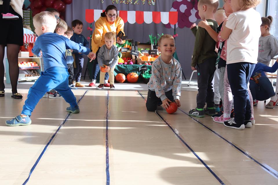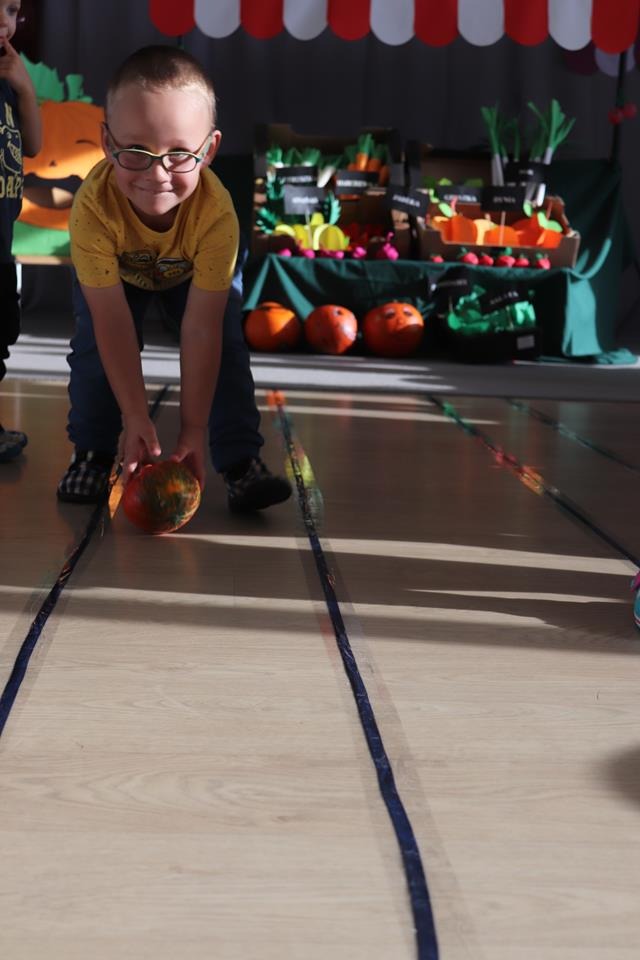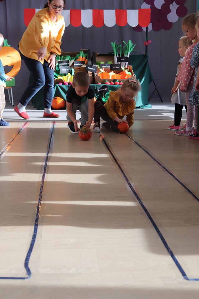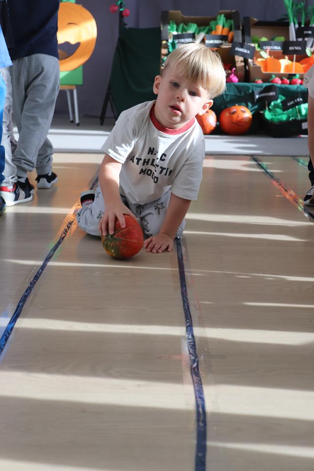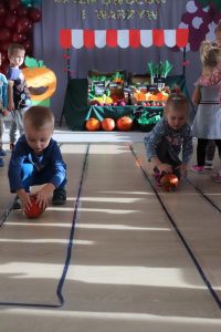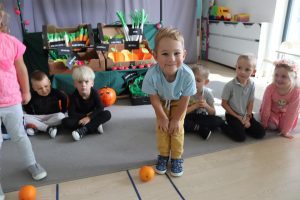 Świętowały również urodziny kolegów. Odbyły się zawody w toczeniu dyni do mety oraz w rzutach woreczkiem do celu, a także zabawy matematyczne. Dzieci bawiły się doskonale![]()