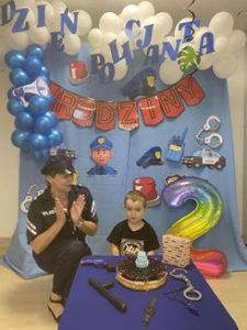 Bez kategorii URODZINY – ŻŁOBEK Posted 4 sierpnia, 20254 sierpnia, 2025 Mariola Hawro Krzyś chce zostać policjantem ,o zawodzie takim marzy .Bo… „ mamusia powiedziała,że w mundurze mu do twarzy.”Jaki jest ważniejszy powód,wiedzą nawet przedszkolaki– Tam w policji, darmo dają,gwizdki, gwiazdki i lizaki.W tym dniu miał urodziny Hubercik Sto! Sto lat! dla naszego chłopca!