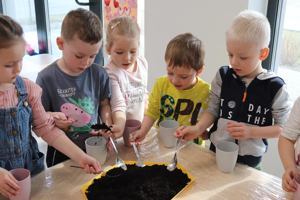 Każdego dnia dzieci troskliwie je podlewały i sprawdzały czy coś wyrosło.