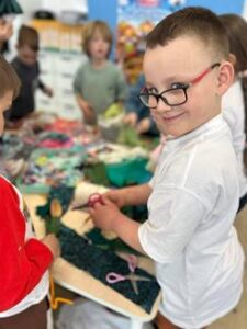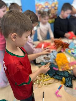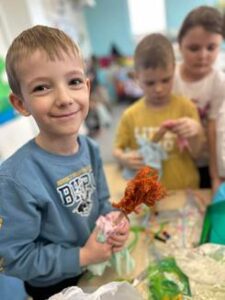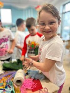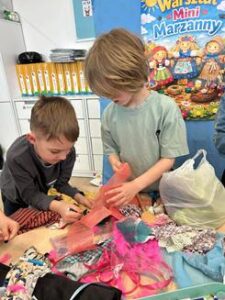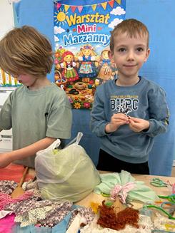 Dzieci z dużym zaangażowaniem tworzyły swoje własne marzanny – wybierały materiały, ozdabiały