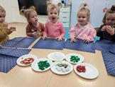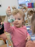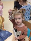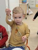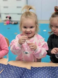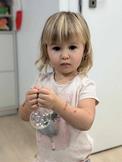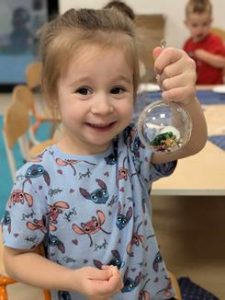 Zamiast sięgać po gotowe zdobienia nasze maluchy postanowiły spróbować własnych sił w tworzeniu wyjątkowych dekoracji. Dzieci wybierały małe ozdoby i wkładały do swoich bombek tworząc niepowtarzalne kompozycje oraz ćwicząc przy tym swoje zdolności manualne