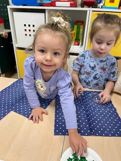 Zamiast sięgać po gotowe zdobienia nasze maluchy postanowiły spróbować własnych sił w tworzeniu wyjątkowych dekoracji. Dzieci wybierały małe ozdoby i wkładały do swoich bombek tworząc niepowtarzalne kompozycje oraz ćwicząc przy tym swoje zdolności manualne