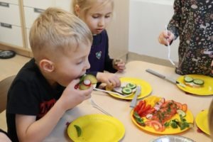 Warsztaty miały na celu kształtowanie u dzieci odpowiednich nawyków żywienieniowych, poznanie kolejności wykonywanych działań, rozwijanie kreatywności oraz zmysłu smaku,