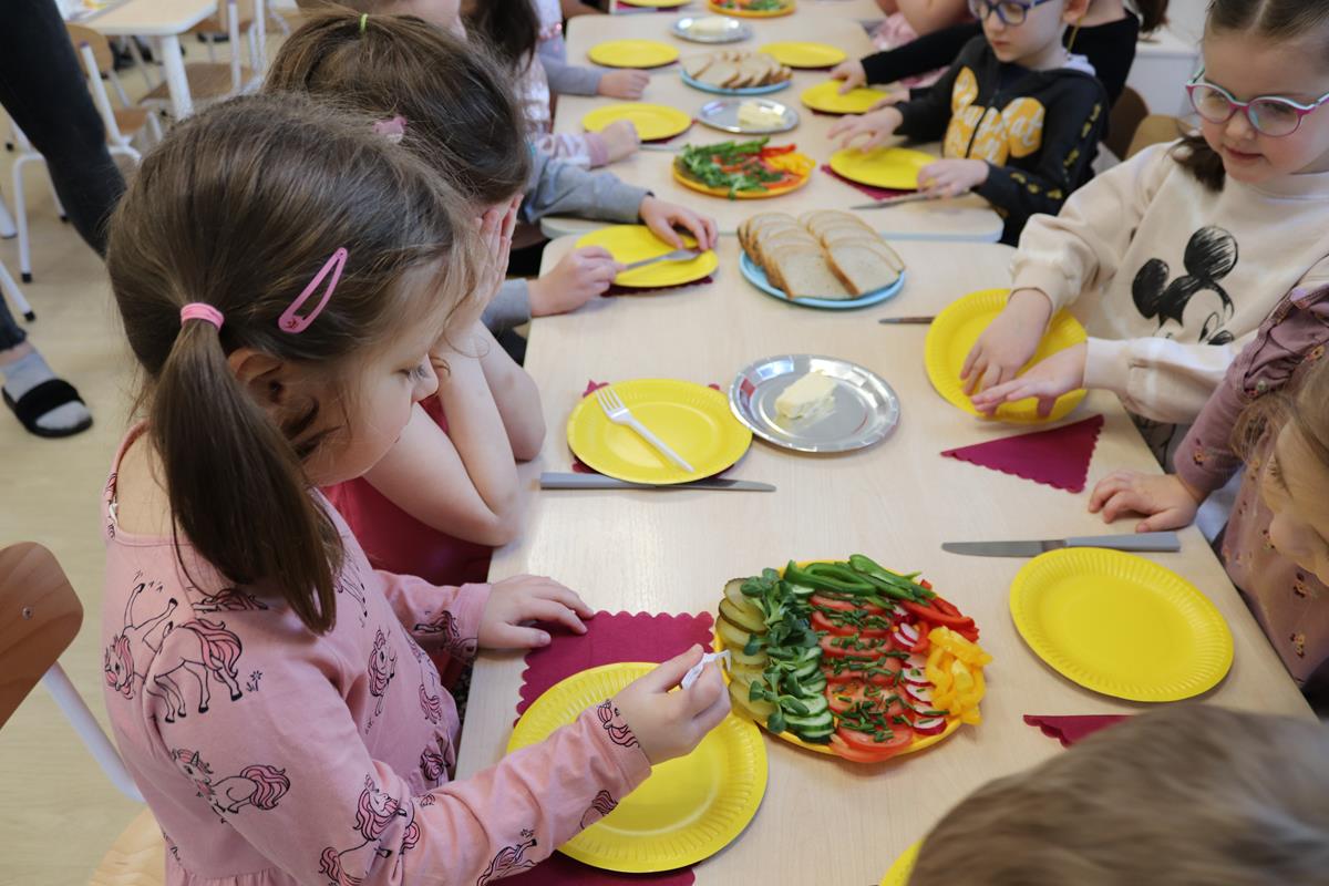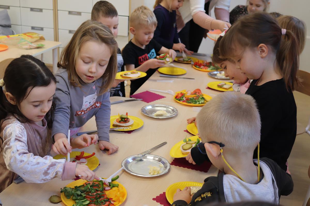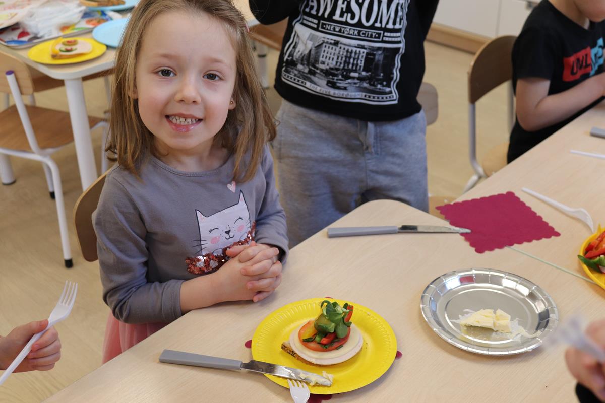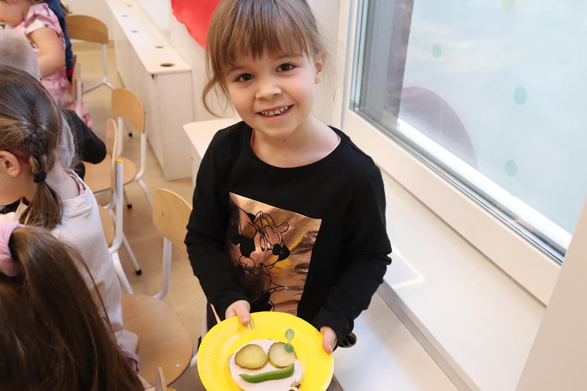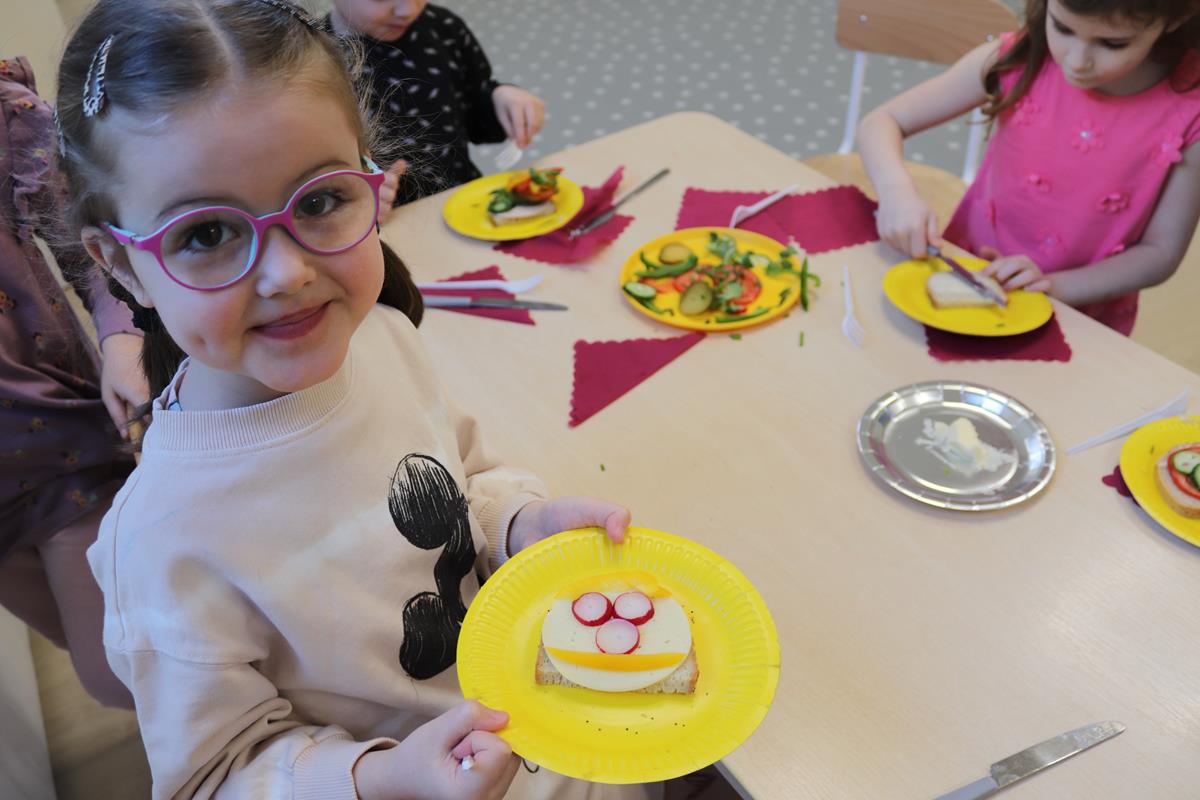 Wszystkie dzieci z zaangażowaniem brały udział w zabawie oraz dobierały składniki tak, aby każda wykonana kanapka wyglądała wyjątkowo.