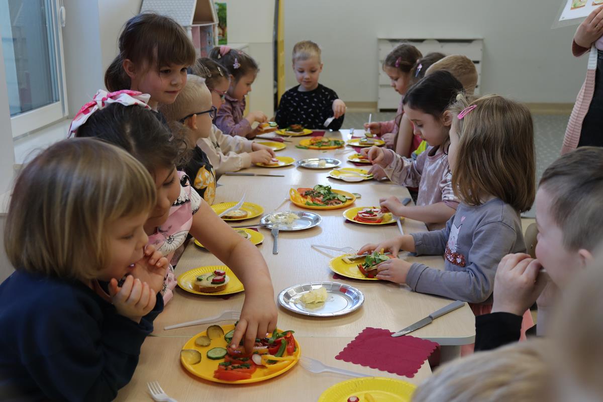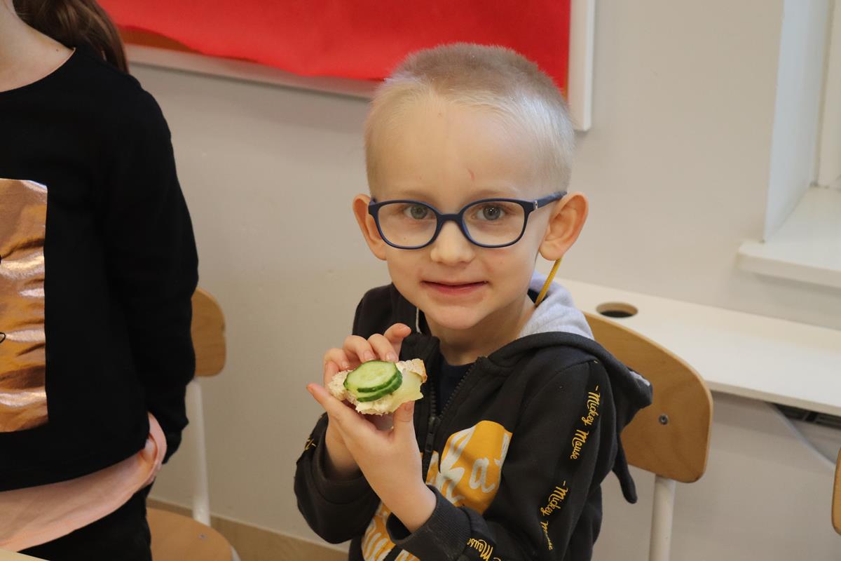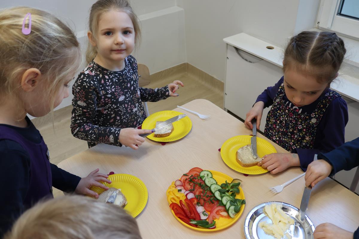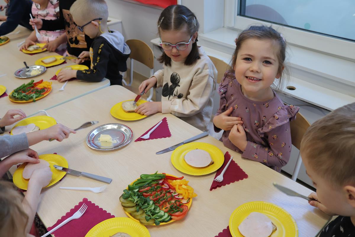 Wszystkie dzieci z zaangażowaniem brały udział w zabawie oraz dobierały składniki tak, aby każda wykonana kanapka wyglądała wyjątkowo.