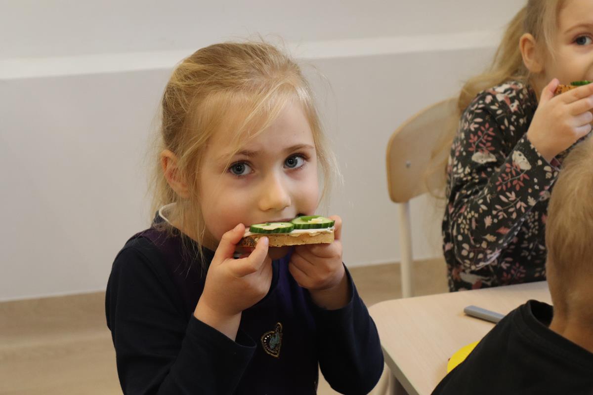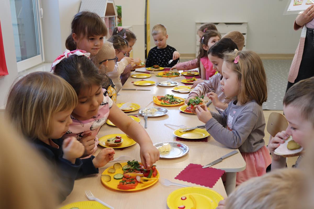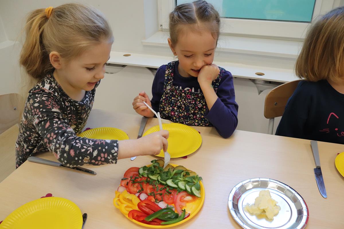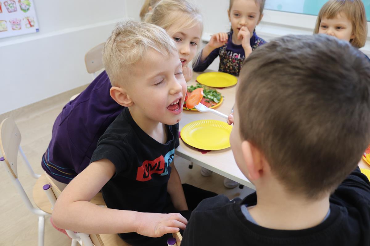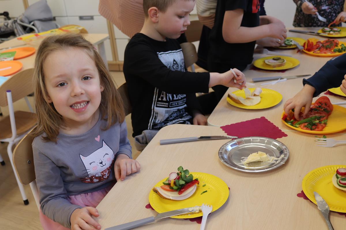 Wszystkie dzieci z zaangażowaniem brały udział w zabawie oraz dobierały składniki tak, aby każda wykonana kanapka wyglądała wyjątkowo.