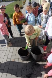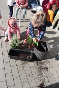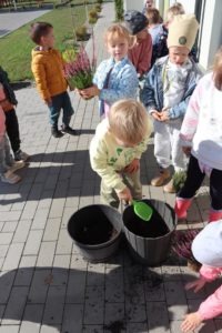 Dlatego nasz grupa wymieniła kwiaty przed wejściem do naszego przedszkola by umilić wejście i rozpoczęcie nowych dni w Ence Pence