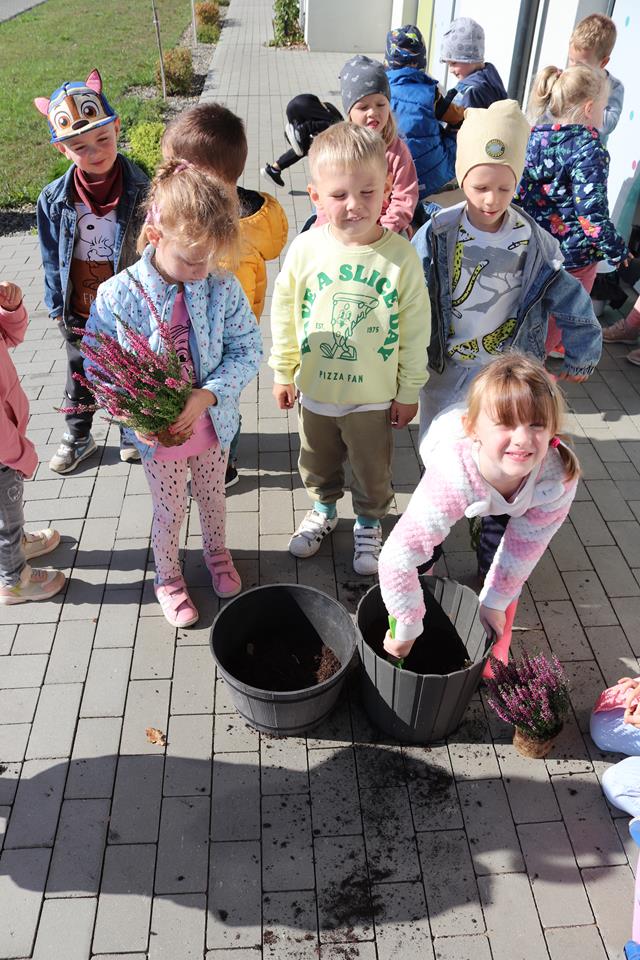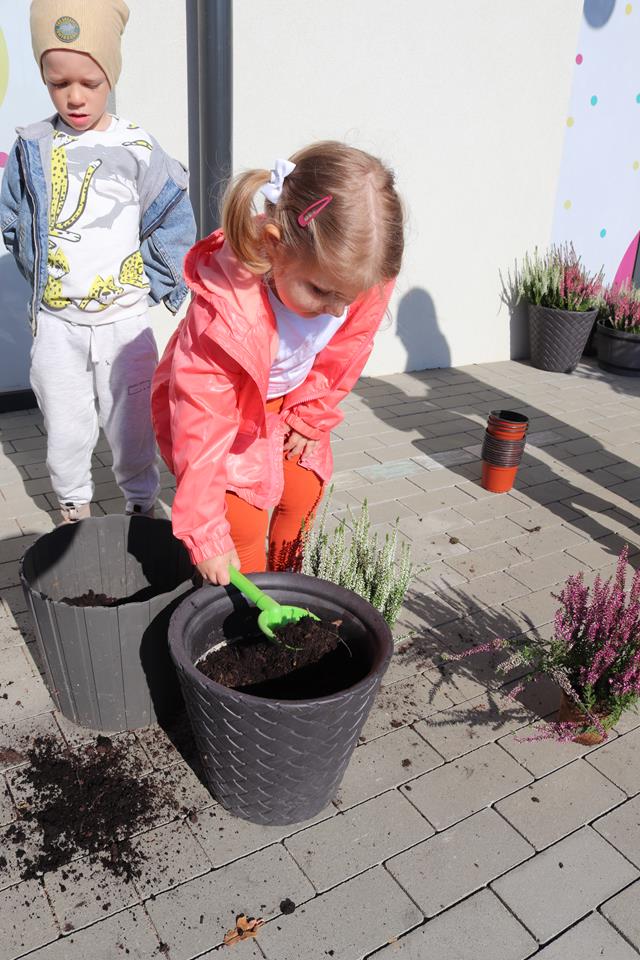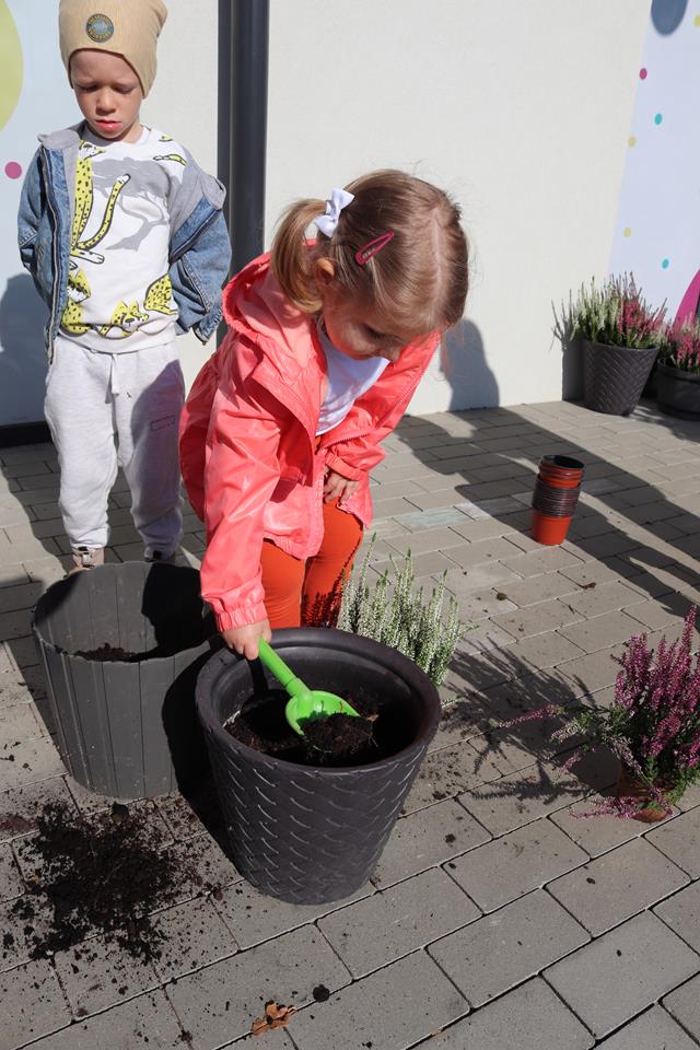 Dlatego nasz grupa wymieniła kwiaty przed wejściem do naszego przedszkola by umilić wejście i rozpoczęcie nowych dni w Ence Pence