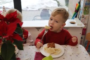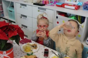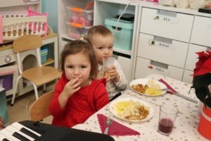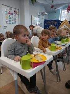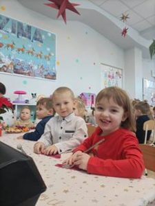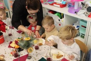 Wczoraj w naszym przedszkolu zebraliśmy się wszyscy razem aby wspólnie zjeść obiad wigilijny