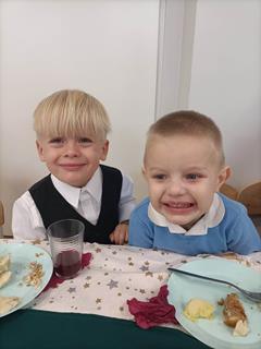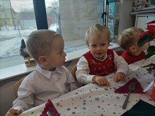 Wczoraj w naszym przedszkolu zebraliśmy się wszyscy razem aby wspólnie zjeść obiad wigilijny