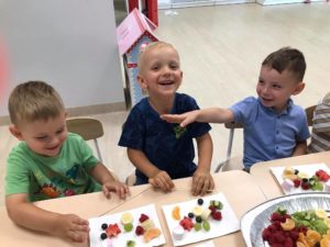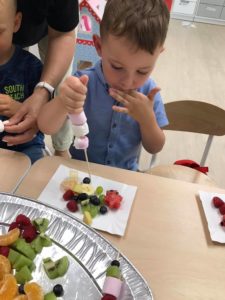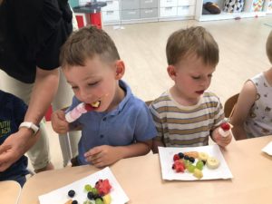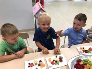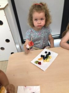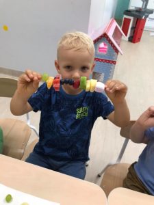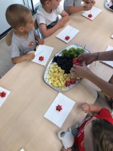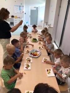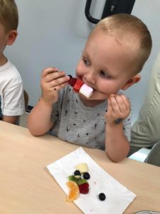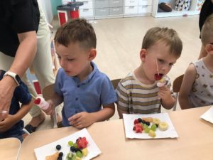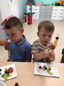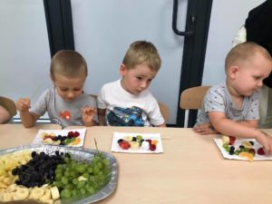 W tym dniu dzieci z grupy Biedronek 🐞 kolejny raz miały możliwość czerpać radość ze wspólnego przygotowywania szaszłyków owocowych 🍉🍇🍏🍒 i przekonać się , że to co zdrowe może ładnie wyglądać i wyśmienicie smakować. Wszystkie brzuszki szybko były zapełnione a to oznacza , że przygodę tą musimy powtórzyć…