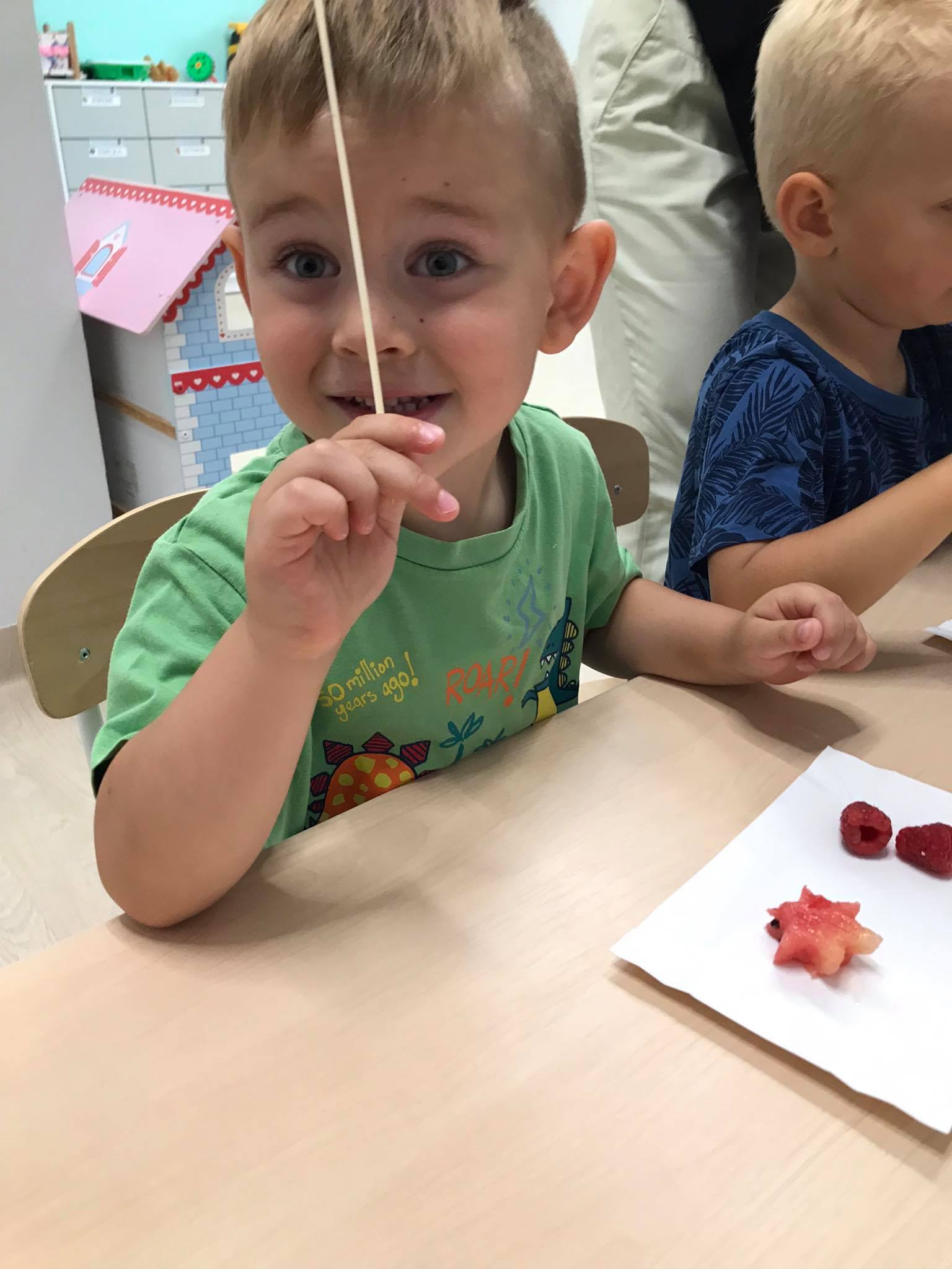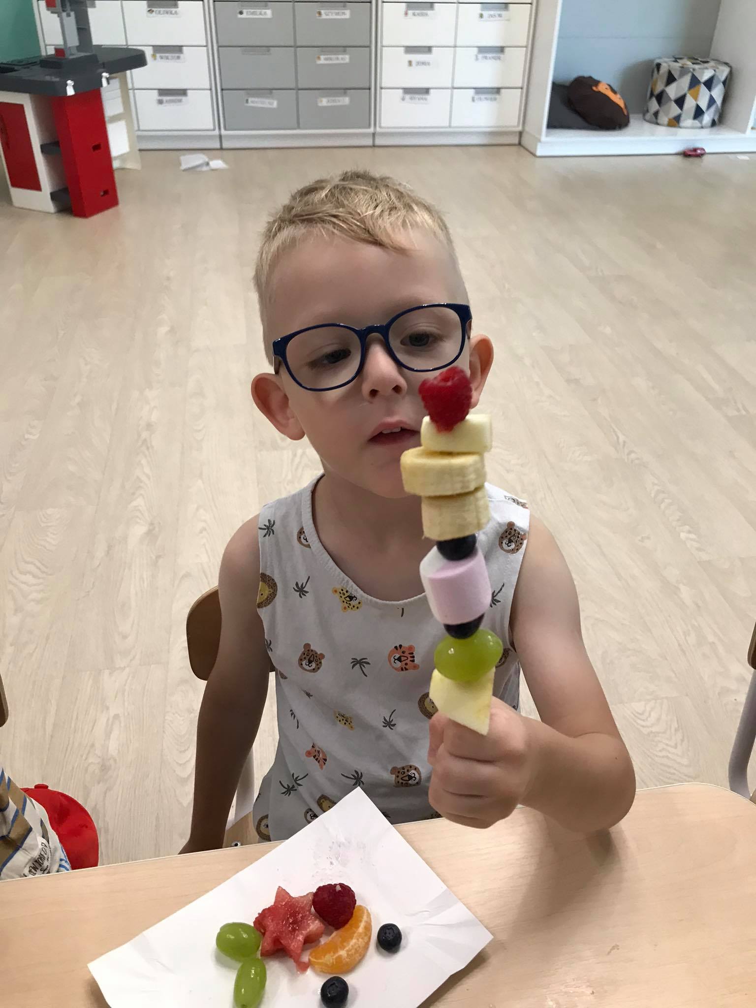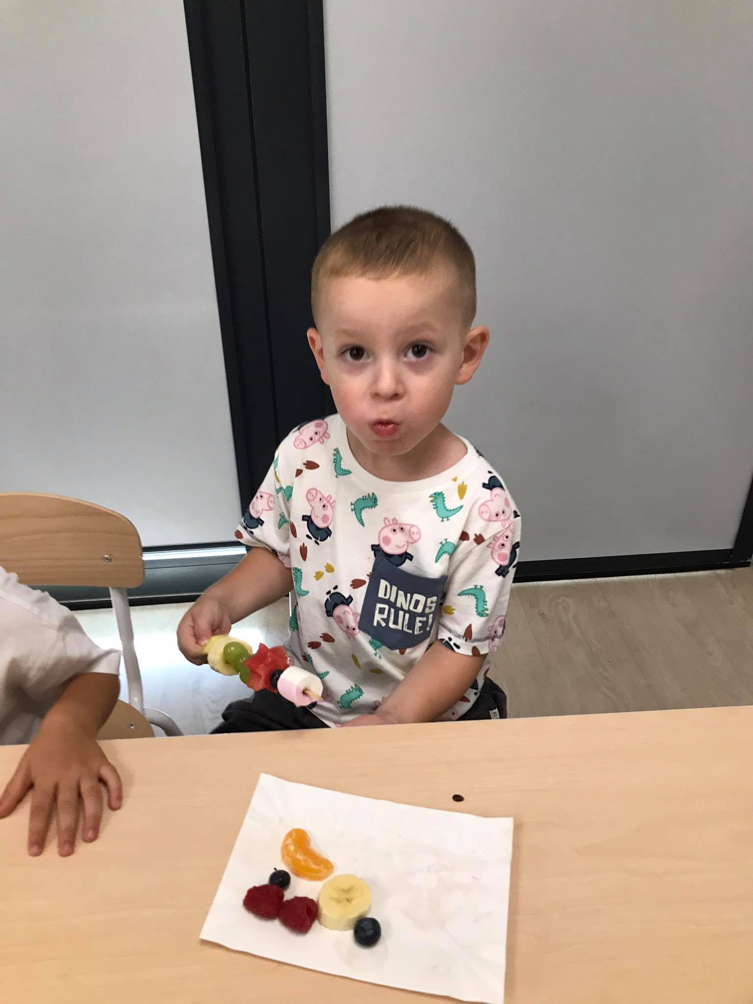 W tym dniu dzieci z grupy Biedronek 🐞 kolejny raz miały możliwość czerpać radość ze wspólnego przygotowywania szaszłyków owocowych 🍉🍇🍏🍒 i przekonać się , że to co zdrowe może ładnie wyglądać i wyśmienicie smakować. Wszystkie brzuszki szybko były zapełnione a to oznacza , że przygodę tą musimy powtórzyć…